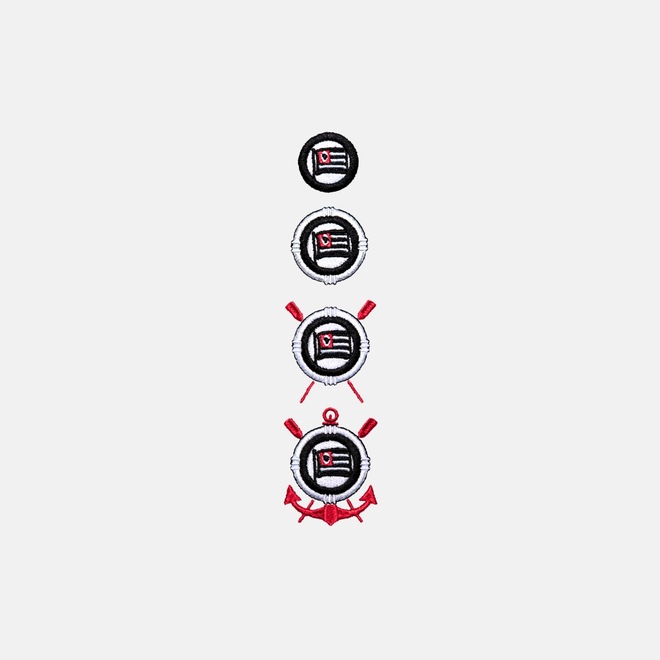 Este bordado representa a evolução do escudo do Corinthians desenhado por Francisco Rebolo, mostrando o escudo como era e os elementos adicionados por Rebolo para chegar em sua versão final. Que são os remos, a boia e a âncora.