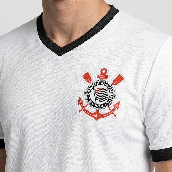 O branco tradicional ganha força com linhas verticais marcantes e um visual moderno que respeita a essência do clube. Uma peça que une futebol e lifestyle, feita para quem carrega o Corinthians no peito dentro e fora do estádio. Minimalista no design. Gigante na identidade. As listras verticais em preto criam presença e personalidade, enquanto o escudo aplicado no peito mantém o peso da história. É a camisa perfeita para jogo, rolê ou dia a dia, versátil e leve. Possui escudo em destaque aplicado com acabamento premium e gola contrastante preta que reforça a identidade clássica contrastando com a modelagem moderna com ótimo caimento.