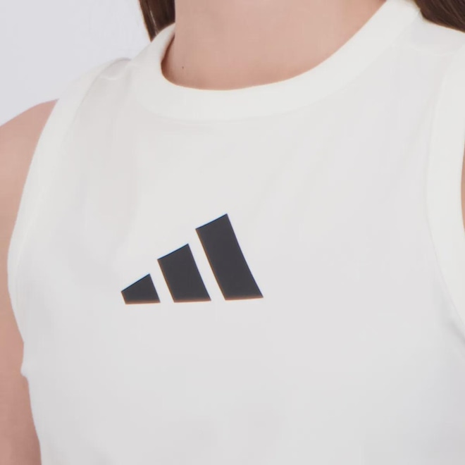 Composição: 75% Poliéster e 25% Elastano Cor predominante: Branca Indicada para: Casual Origem: Importada Gênero: Feminino Logo: Esatmpada Manga: Regata Gola: Careca Dimensões aproximadas (A x L): EP (XXS): 33 x 34 cm PP (XS): 35 x 36 cm P (S): 37 x 38 cm M (M): 39 x 40 cm G (L): 41 x 42 cm GG (XL): 43 x 44 cm