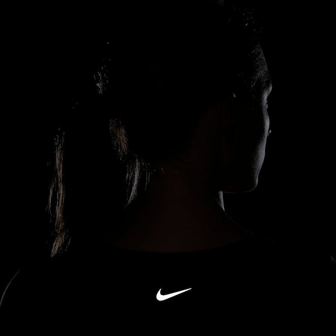 CroppedTecnologia(s) no Produto Dri-Fit: Tecido de poliéster de elevado desempenho e de microfibra que absorve o suor local para a superfície do tecido, onde se evapora e permite que o corpo fique seco e confortável. Detalhes Refletivos Refletivo: Possui propriedades refletivas que aumentam a visibilidade para maior segurança aos atletas que praticam esportes em locais com pouca iluminação.