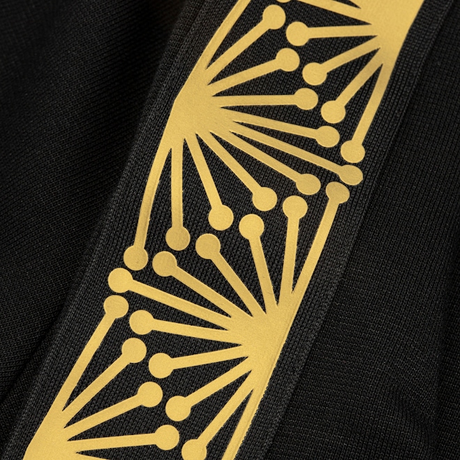 Finalizado em dourado, o escudo do time, o Trefoil e os detalhes decorativos chamam a atenção.