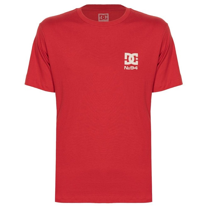 Camiseta Dc Shoes feita em modelagem regular, meia malha 30.1, estampa frente e costas e etiquetas personalizadas.