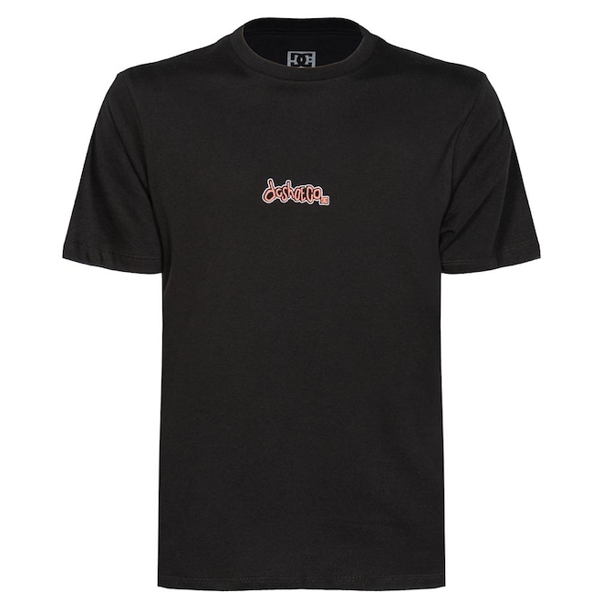 Camiseta Dc Shoes feita em modelagem regular, meia malha 30.1, estampa frontal e etiquetas personalizadas.