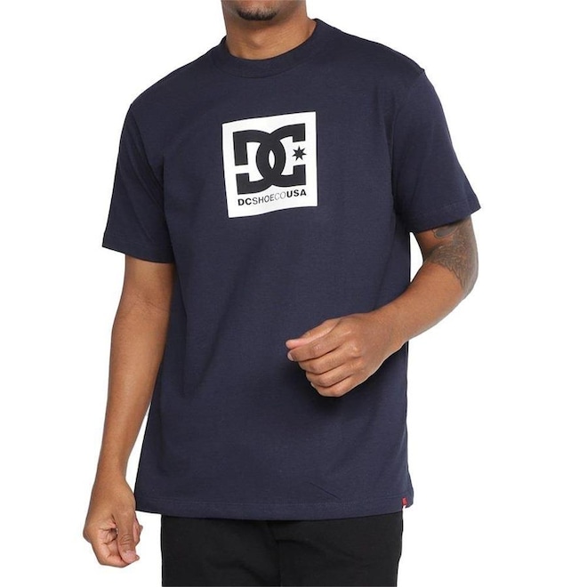 Camiseta DC Shoes manga curta com malha cardada, modelagem oversize, gola de 3cm, estampa frontal e etiqueta personalizadas.