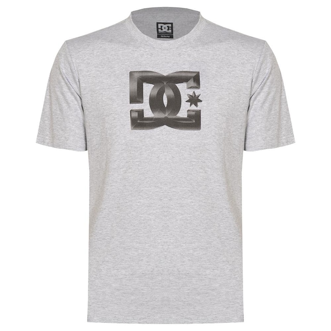 Camiseta Dc Shoes feita em modelagem regular, meia malha 30.1, estampa frontal e etiquetas personalizadas.