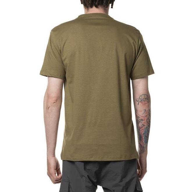 Camiseta manga curta com modelagem regular, meia malha 30.1, estampa frontal e etiquetas personalizadas.