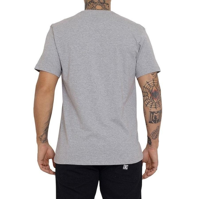 Camiseta DC Shoes com modelagem regular, malha penteada fio 30/1 e silk frontal.