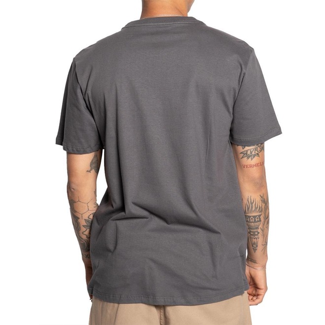 Camiseta Dc Shoes feita em modelagem regular, meia malha 30.1, estampa frontal e etiquetas personalizadas.
