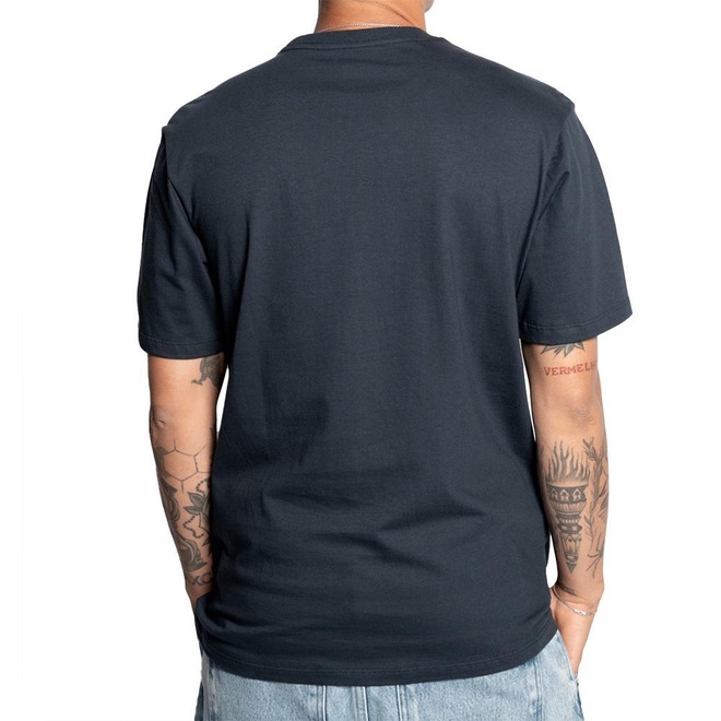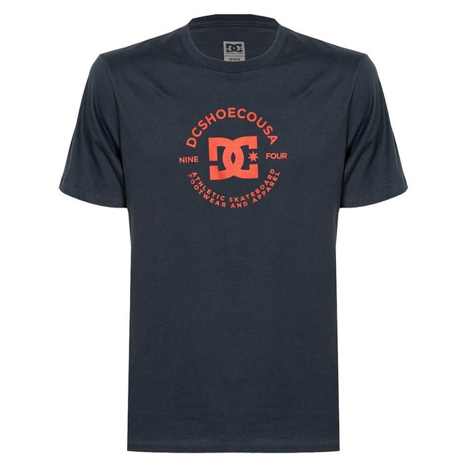 Camiseta Dc Shoes feita em modelagem regular, meia malha 30.1, estampa frontal e etiquetas personalizadas.