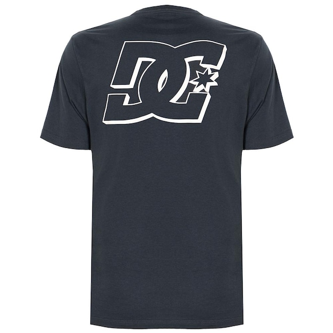 Camiseta Dc Shoes feita em modelagem regular, meia malha 30.1, estampa frente e costas e etiquetas personalizadas.