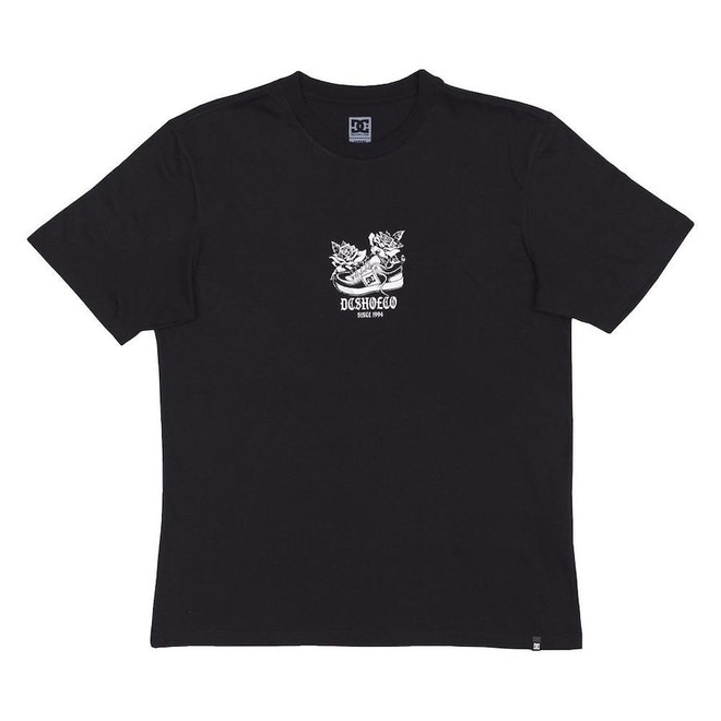Camiseta DC Shoes feito em meia malha 30.1, modelagem regular, estampa na parte frontal e etiquetas personalizadas.