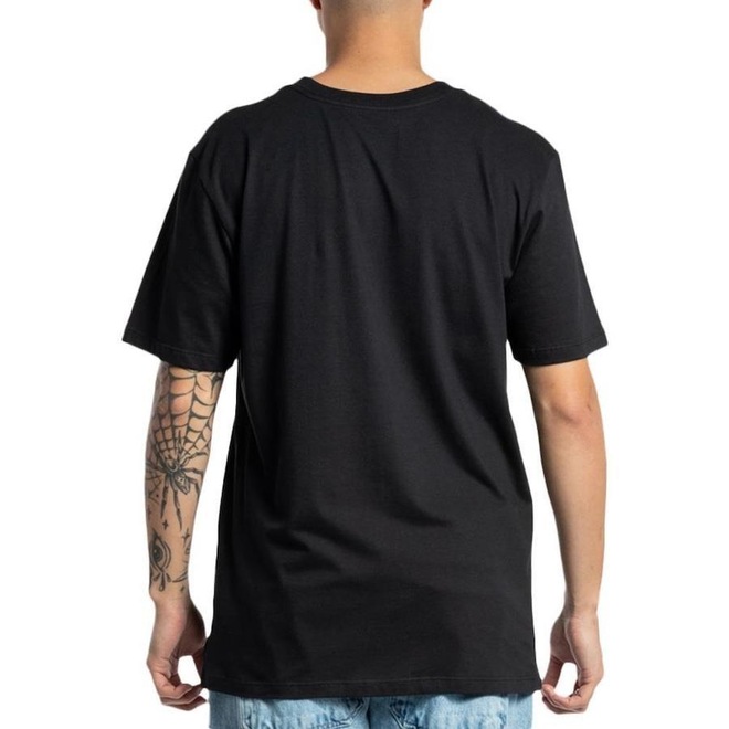 Camiseta DC Shoes manga curta, modelagem regular, meia malha 30.1, estampa frente e etiquetas personalizadas.