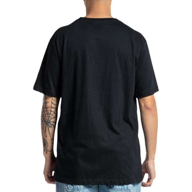Camiseta DC Shoes manga curta, modelagem regular, meia malha 30.1, estampa frente e etiquetas personalizadas.