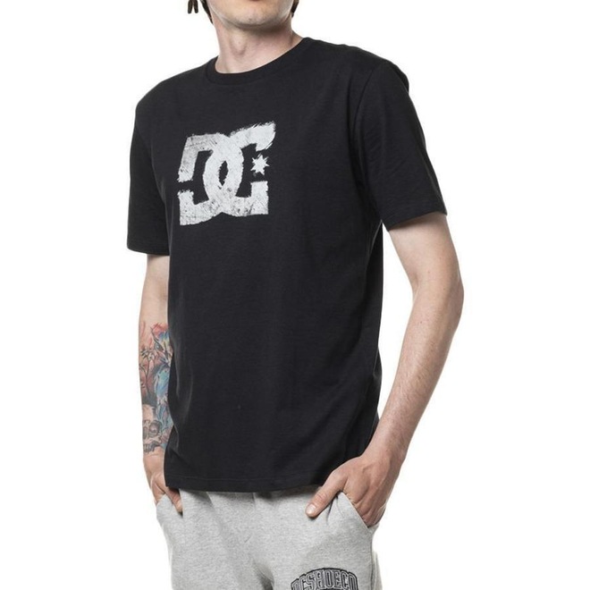 Camiseta DC Shoes de manga curta, em modelagem regular, meia malha 30.1, estampa frontal e etiquetas personalizadas.