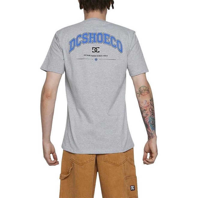 Camiseta DC Shoes feita em modelagem regular, meia malha 30,1, estampa frente e costas e etiquetas personalizadas.