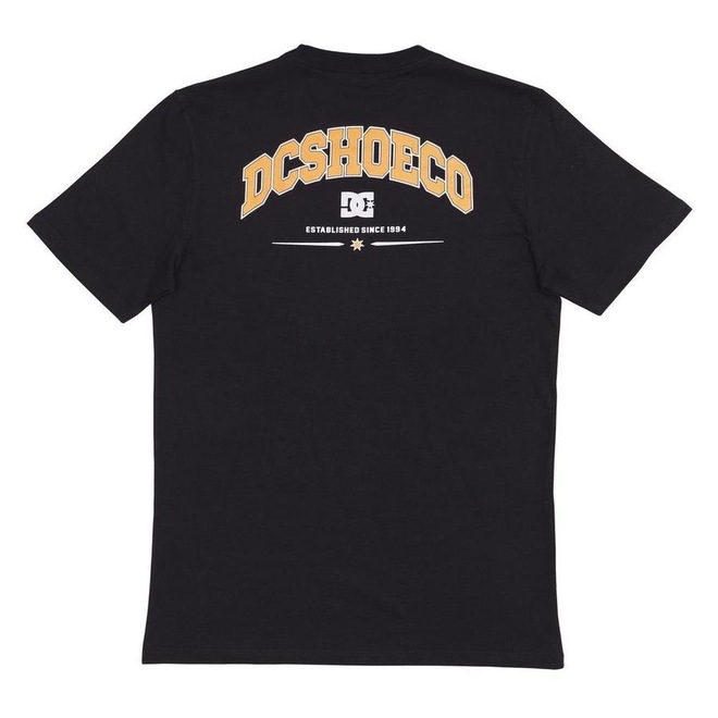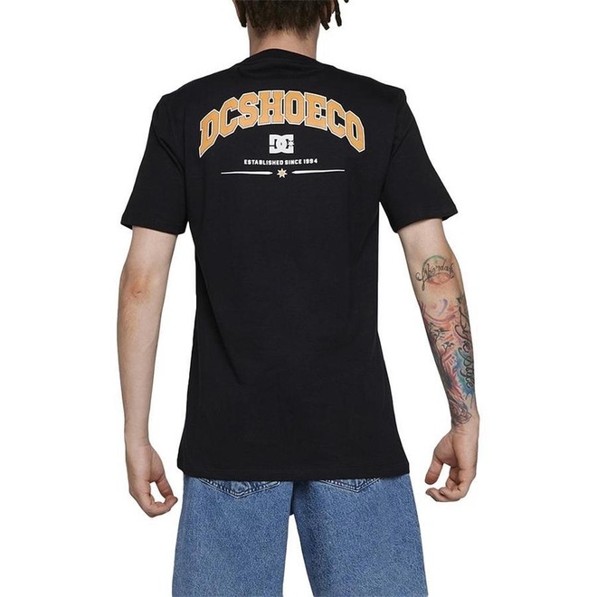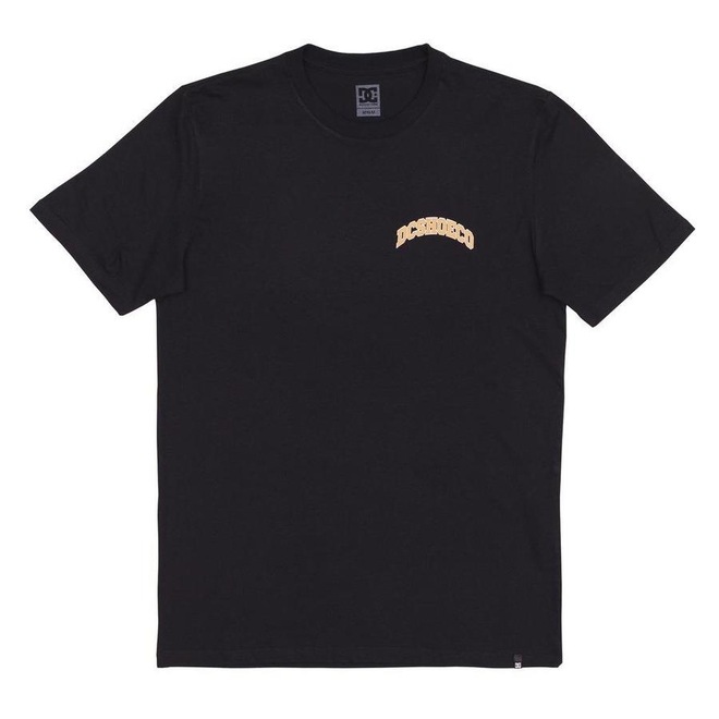 Camiseta DC Shoes feita em modelagem regular, meia malha 30,1, estampa frente e costas e etiquetas personalizadas.