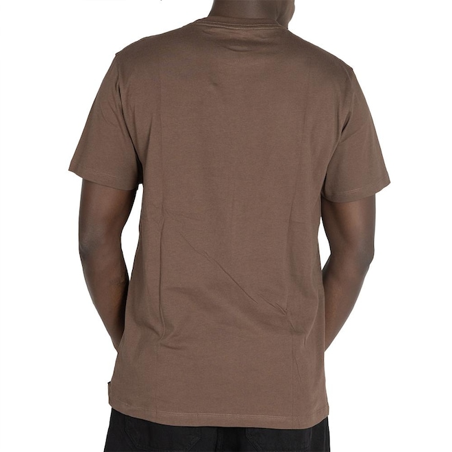 Camiseta Dc Shoes feita em modelagem regular, meia malha 30.1, estampa no peito e etiquetas personalizadas.