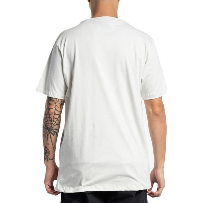 Camiseta DC Shoes manga curta, modelagem regular, meia malha 30.1, estampa frente e etiquetas personalizadas.
