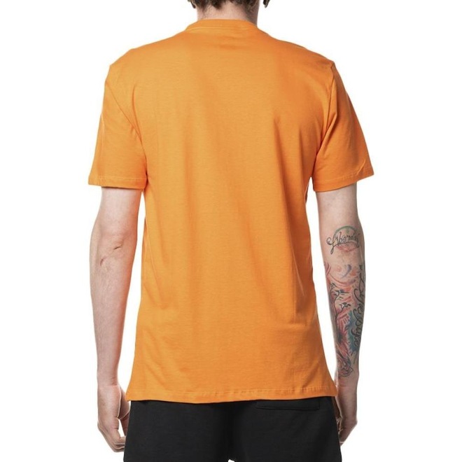 Camiseta manga curta com modelagem regular, meia malha 30.1, silk transfer frontal e etiquetas personalizadas.
