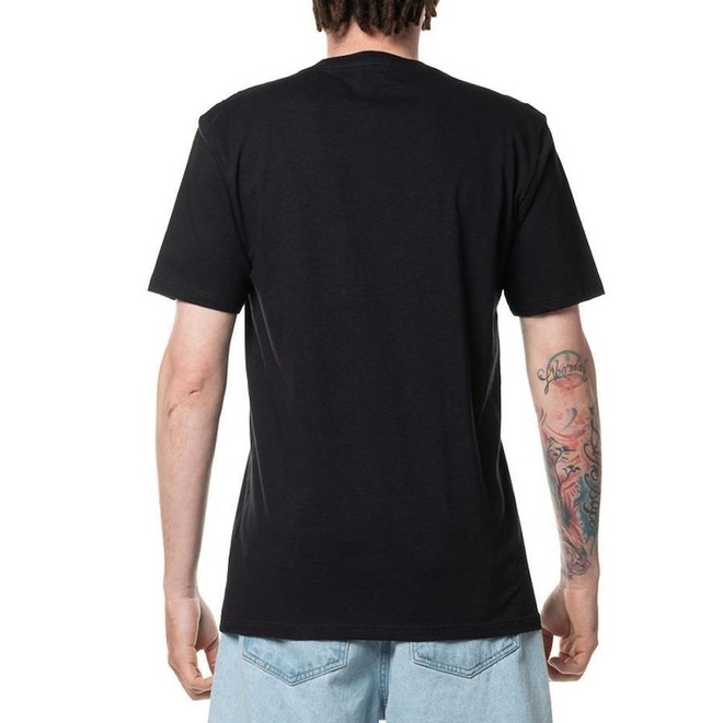 Camiseta DC Shoes que conta com estampa frontal , modelagem regular, malha 30/1 e etiquetas personalizadas da collab.