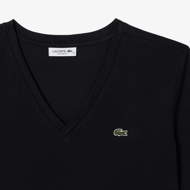 Apresentando um corte moderno, drapeado com ombros caídos em malha de algodão confortável: essa camiseta de gola V da Lacoste é um clássico por um motivo. Acabada com o nosso crocodilo bordado diferenciado.