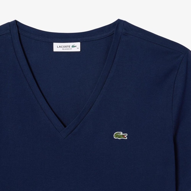 Camiseta de Algodão com Gola V e Caimento Relaxado Lacoste Feminina - Foto 1