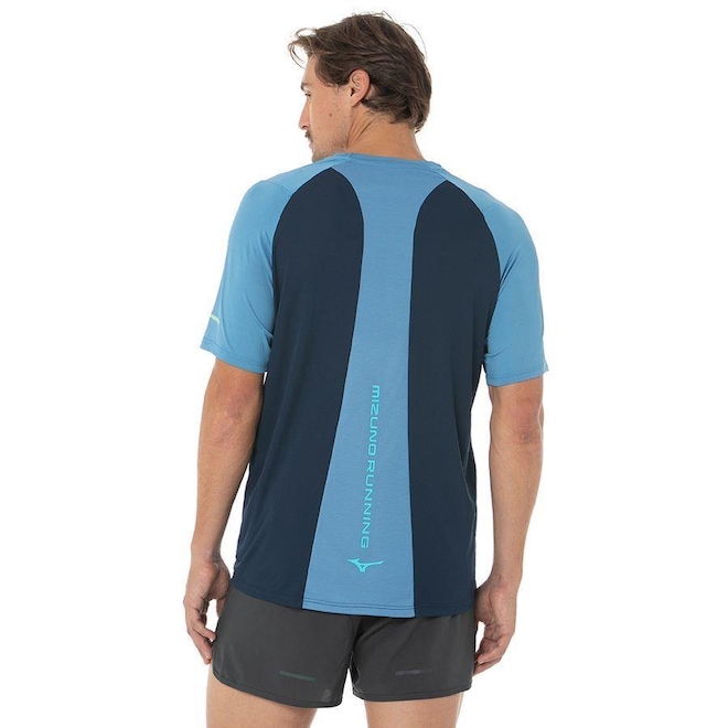 Concentre-se na sua corrida, com a Camiseta de Corrida High 2. Camiseta feita com a combinação de tecidos com texturas que absorvem o suor, te mantendo fresco a cada passada. A modelagem com mangas raglan e barra com fenda laterais, permitem que seu corpo se movimente com liberdade e mais confiança. Elementos em tecnologia refletiva trazem mais segurança para as corridas noturnas. A peça ainda ganha destaque com assinatura especial Mizuno no recorte central das costas.