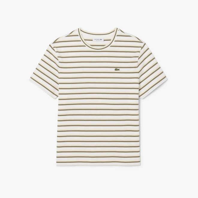 Uma camiseta repleta de toques elegantes, especializados da Lacoste, criadora de moda esportiva desde 1933. Feita em malha de algodão confortável, com listras estreitas de dois tons por toda a peça. Uma peça atemporal, com detalhes de acabamento premium e o crocodilo típico bordado.