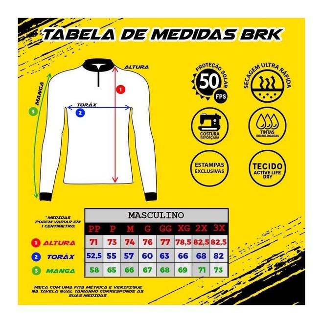Tamanhos disponíveis Masculino: PP, P, M, G, GG, XG, 2X e 3X