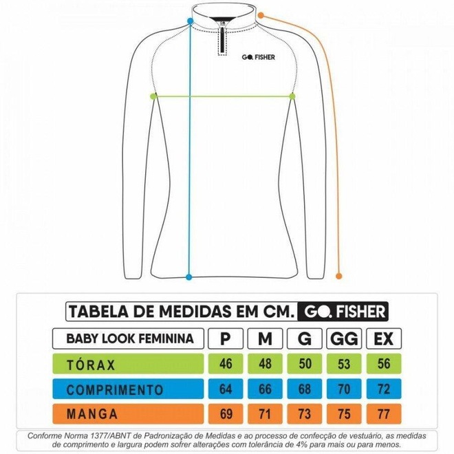 P - Tórax - 46cm / Comprimento - 64cm / Manga - 69cm