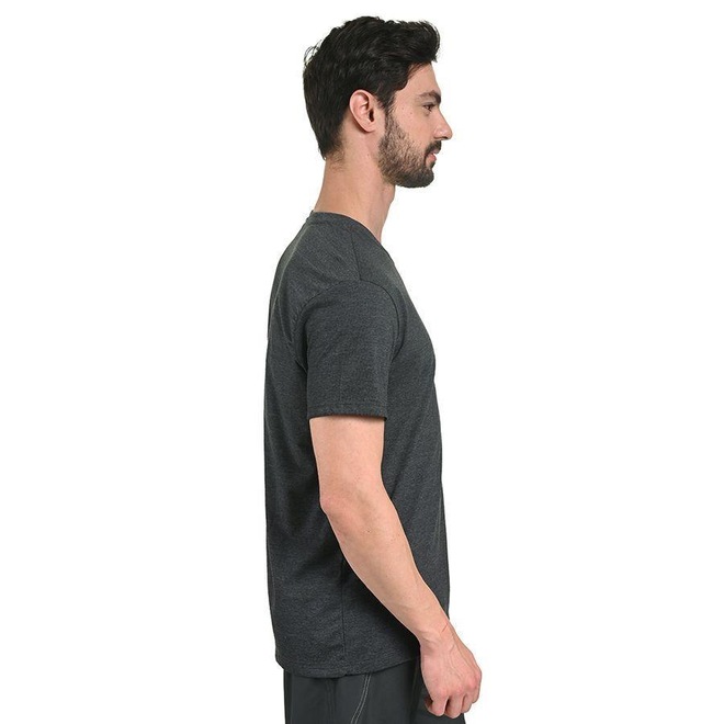 T-shirt confeccionado em malha sólida e mescla.Modelagem tradicional.