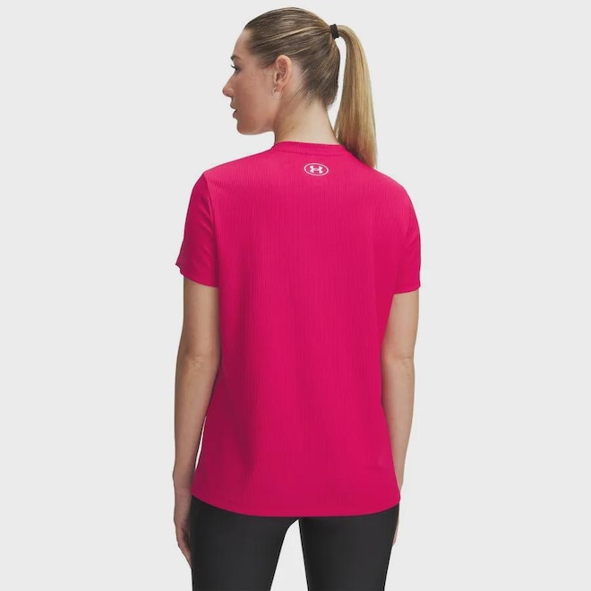 O tecido UA Tech é conhecido por sua leveza e desempenho, mas nesta versão com textura em ribana, ele atinge um novo patamar de conforto e estilo. Ele foi projetado para ser a sua escolha principal, oferecendo uma sensação incrivelmente suave e todas as propriedades que você precisa para se manter focado e confortável, seja durante um treino intenso ou em um dia casual.