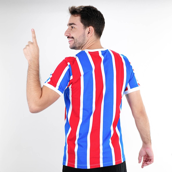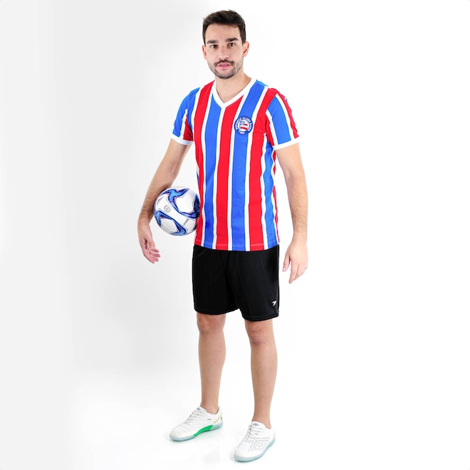 Orgulho e Tradição para Eternizar o Bicampeonato! Camiseta de Time RetrôMania Bahia 1988 Listrada Branco Azul e Vermelho - Masculino Ficha Técnica: Marca: RetrôMania Gênero: Masculino Cor: Branco, Azul e Vermelho Material: 100% Algodão premium, listrado de fábrica Gola: V em ribana Escudo: Bordado em patch e aplicado na camisa Indicado para: Torcedores, colecionadores e apaixonados pelo Bahia Detalhes: Taça do título bordada diretamente na camisa Cansado de camisas de time sem história? O Bahia de 1988 fez história ao conquistar o Brasileirão, e agora você pode carregar esse legado no peito! Por que investir? A Camiseta RetrôMania resgata cada detalhe daquela camisa lendária, com tecido premium, gola V clássica e bordados autênticos. Um item indispensável para qualquer torcedor que quer reviver a emoção do bicampeonato brasileiro. Conteúdo da embalagem: 1 Camiseta de Time RetrôMania Bahia 1988 Listrada Branco Azul e Vermelho - Masculino