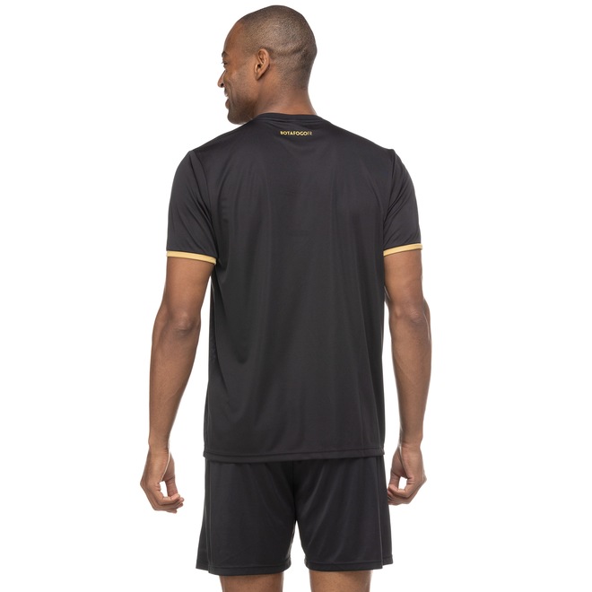 Possui a leveza e ótimo caimento do poliéster que proporciona uma mobilidade natural e confortável, além de gola com tira interna que ajuda a diminuir o desconforto do atrito da costura.