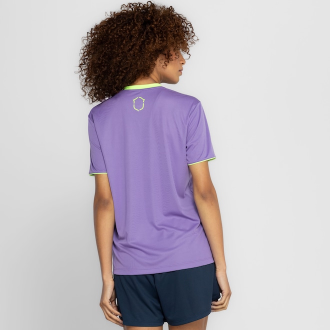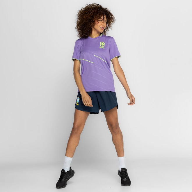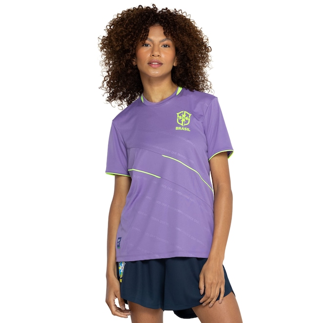 A camiseta do Brasil conta com mangas curtas e gola careca, canelada e tem tira interna que protege do atrito junto à pele.