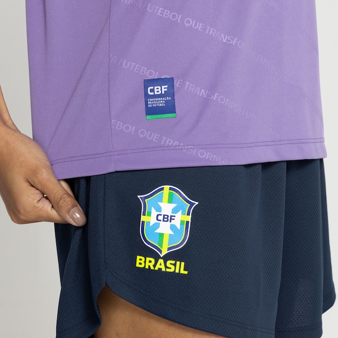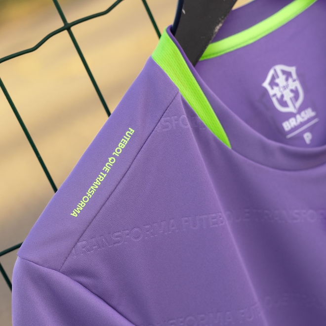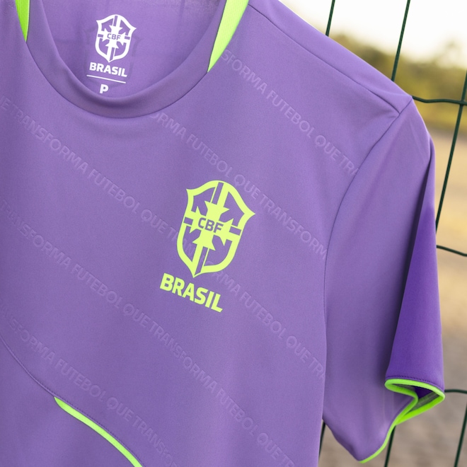 O “Futebol Transforma” o slogan da CBF é estampado em toda a camiseta para reforçar o quanto a modalidade mudou a vida das jogadoras e como é algo que impacta positivamente na vida de muitos brasileiros.