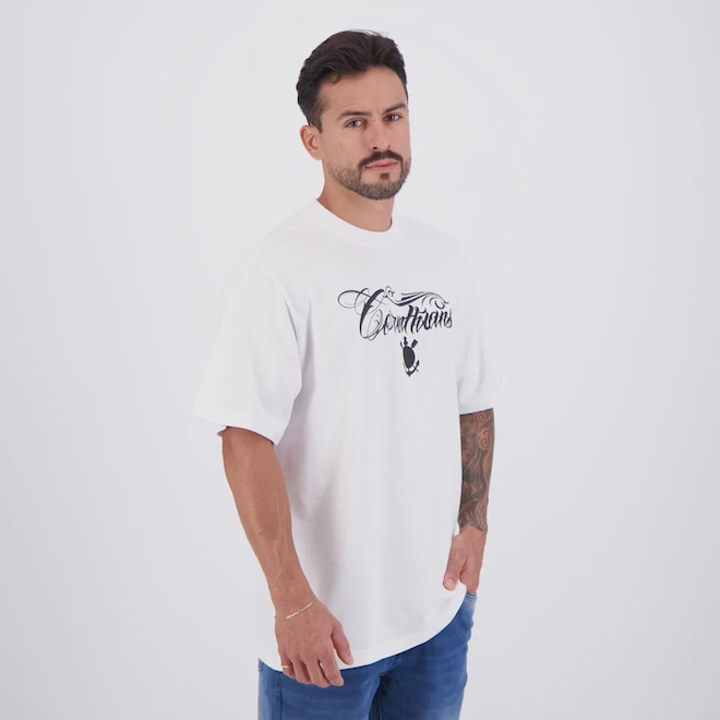 Composição: 100% AlgodãoCor Predominante: BrancaGênero: MasculinoIndicado: CasualOrigem: NacionalEscudo: EstampadoClube: CorinthiansManga: CurtaGola: CarecaDimensões aproximadas (A x L):P: 77 x 58 cmM: 78 x 61 cmG: 82 x 60 cmGG: 83 x 64 cm* MODELAGEM OVERSIZED
