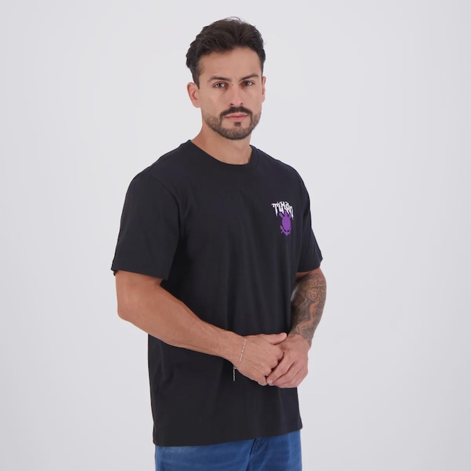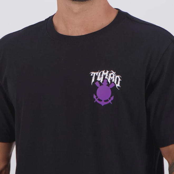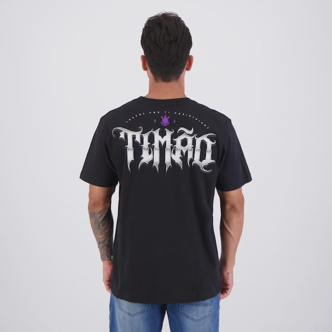 Composição: 100% Algodão Cor Predominante: Preta Gênero: Masculino Escudo: Estampado Time: Corinthians Indicado: Casual Origem: Nacional Manga: Curta Gola: Careca Dimensões aproximadas (A x L): P: 73 x 56 cm M: 74 x 57 cm G: 77 x 60 cm GG: 78 x 62 cm