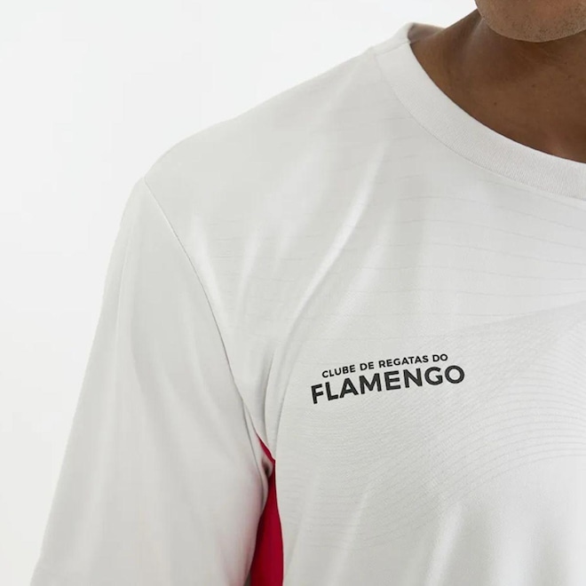 Camiseta confeccionada em Dry Max 100% poliéster, tecido leve, de excelente caimento, que garante conforto, alta respirabilidade e pele sempre seca. Em cor gelo, tendência atual, o modelo traz estampa do escudo de esportes terrestres no peito e uma estampa em toque zero inspirada no movimento das ondas sonoras. Os recortes laterais em rubro-negro adicionam contraste dinâmico e estilo ao visual, destacando a identidade flamenguista.
