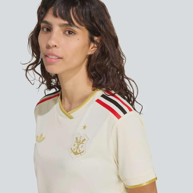 TecnologiaAeroready: Sistema que controla o excesso de umidade do corpo, garantindo a rápida secagem do suor durante os exercícios.Composição: 100% PoliésterCor predominante: Off-whiteModelo: TorcedorClube: FlamengoOrigem: NacionalGênero: FemininoEscudo: BordadoManga: CurtaGola: VDimensões aproximadas (A x L):PP (XS): 43 x 41 cmP (S): 44 x 44 cmM (M): 45 x 47 cmG (L): 47x 51 cmGG (XL): 49 x 54 cmEG (2XL): 51 x 56 cm