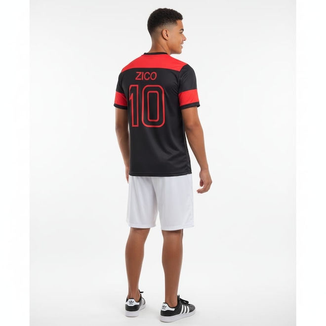 Camisa Flamengo Zico Número 10 é um produto licenciado, desenvolvido com qualidade e respeito à tradição rubro-negra. Mais que um uniforme, é um símbolo da paixão do torcedor e da história de um dos maiores ídolos do clube. Com nome e número estampados e detalhe em dourado com a assinatura bordada de Zico, une estilo, memória e orgulho em cada detalhe, permitindo que você reviva momentos inesquecíveis do Mengão. Especificações: Produto oficial licenciado Flamengo. Número 10 estampado nas costas. Nome Zico aplicado na parte traseira. Assinatura bordada em dourado. Modelagem masculina. Benefícios: Homenagem a um dos maiores ídolos da história do Flamengo. Orgulho rubro-negro para usar em jogos, estádios ou no dia a dia. Conforto garantido com tecido leve e respirável. Qualidade e durabilidade de um produto licenciado. Peça especial para torcedores e colecionadores. Composição: 100% Poliéster. Cuidados: Lavar à mão em água fria. Não usar alvejantes ou amaciantes. Não passar sobre estampas e bordados. Secar à sombra.