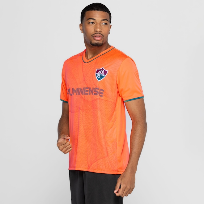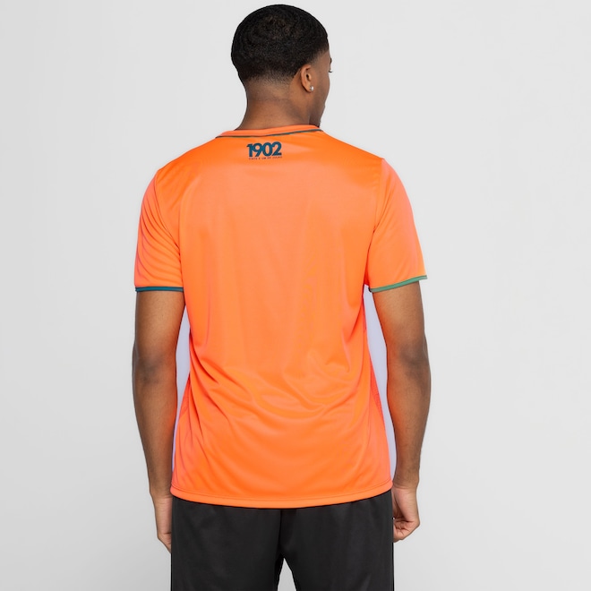 Em tom laranja, apresenta a leveza e ótimo caimento do poliéster para você vibrar pelo clube do coração sem limitar os movimentos.