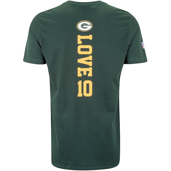 Exiba seu orgulho pelo Green Bay Packers com a Camiseta NFL Masculina Player Love! Com gola clássica e tira interna que reduz o atrito, proporciona conforto durante o uso. Confeccionada em algodão de alta qualidade, a camiseta traz uma estampa personalizada do time, perfeita para mostrar seu apoio em qualquer ocasião. Ideal para fãs que buscam estilo e conforto no dia a dia.