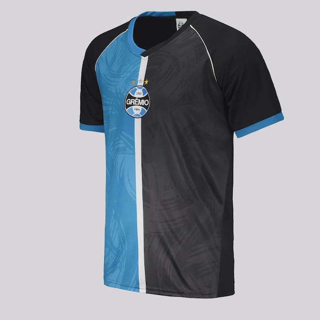 Composição: 100% PoliésterCor predominante: PretoGênero: MasculinoOrigem: ImportadoEscudo: BordadoClube: GrêmioManga: CurtaGola: VDimensões aproximadas (A x L):P: 69 x 52 cmM: 71 x 54 cmG: 73 x 56 cmGG: 75 x 58 cmEG: 77 x 60 cm