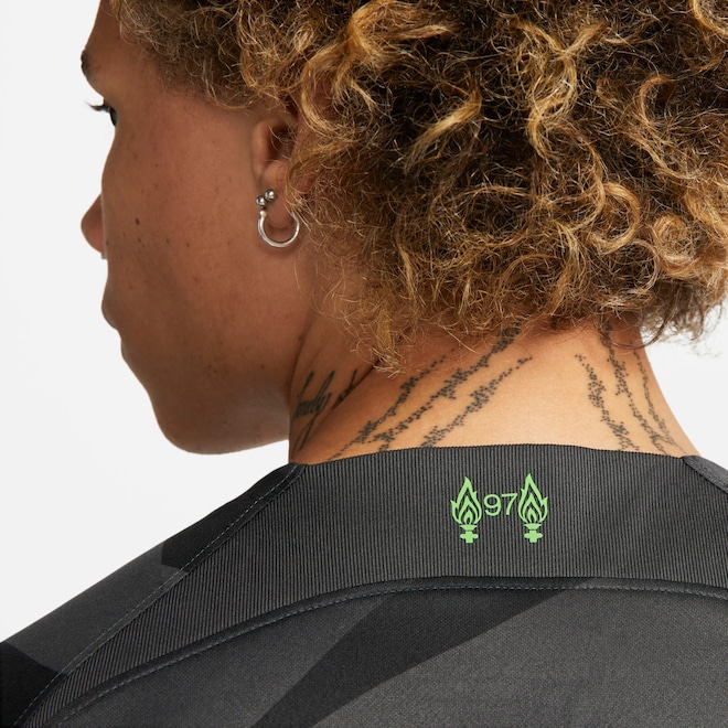 Confeccionada em tecido leve e respirável com tecnologia Dri-FIT, mantém o corpo seco e confortável durante a torcida ou atividades do dia a dia. O design oficial traz detalhes autênticos do clube, incluindo o escudo e a barra com a frase icônica “Um é pouco, dois é bom, três só o Liverpool”, reforçando sua conexão com a equipe. Versátil, confortável e cheia de estilo, é a escolha perfeita para torcedores que não abrem mão de mostrar sua paixão.