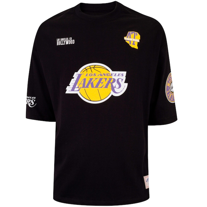 CarecaEstampa Personalizada Composição do Tecido Algodão Conteúdo da Embalagem 1 Camiseta Garantia do Fornecedor Contra Defeito de Fabricação Time Los Angeles Lakers Tipo de Manga Manga Curta Modelagem Oversize