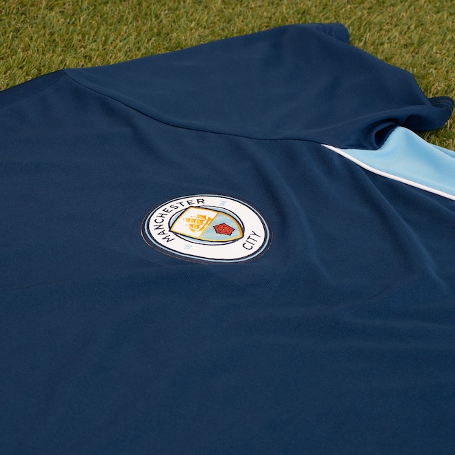 Com gola careca canelada e estampa personalizada, é a escolha ideal para todo torcedor fiel dos Citizens.