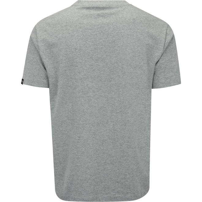 Conta com mangas curtas e sua gola é careca, canelada e tem tira interna.