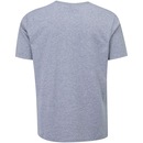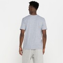 Possui mangas curtas e sua gola é careca, canelada e tem tira interna.