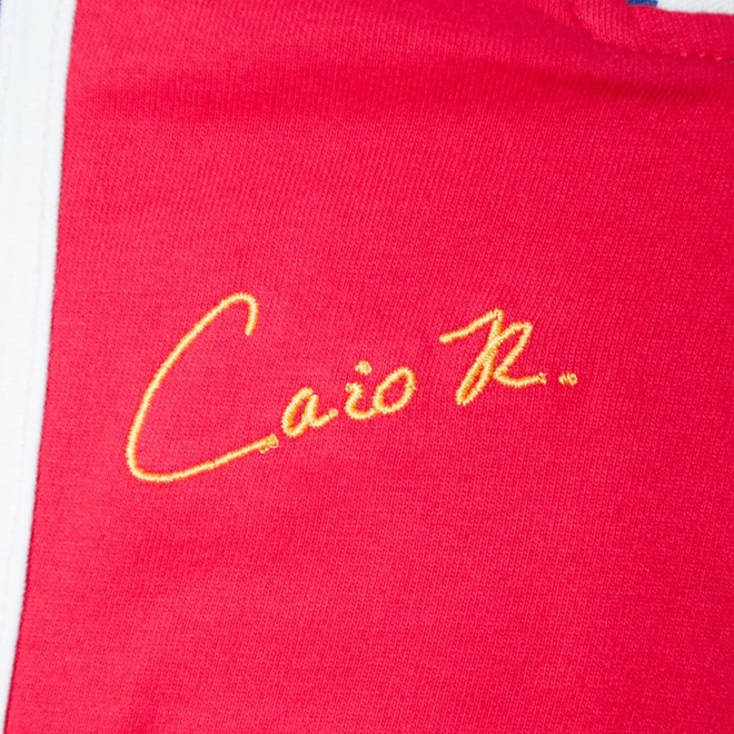 A camisa leva a assinatura do ex-atleta e treinador Caio Júnior, que fez parte daquela equipe inesquecível do Tricolor da Vila.